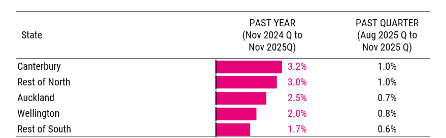 Quarterly and annual average advertised salary growth was fastest in Canterbury at 1.0% q/q and 3.2% y/y.