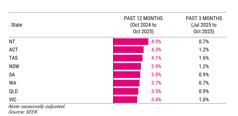 Figure 3: Year-on-year growth of SEEK Advertised Salary Index by state/territory