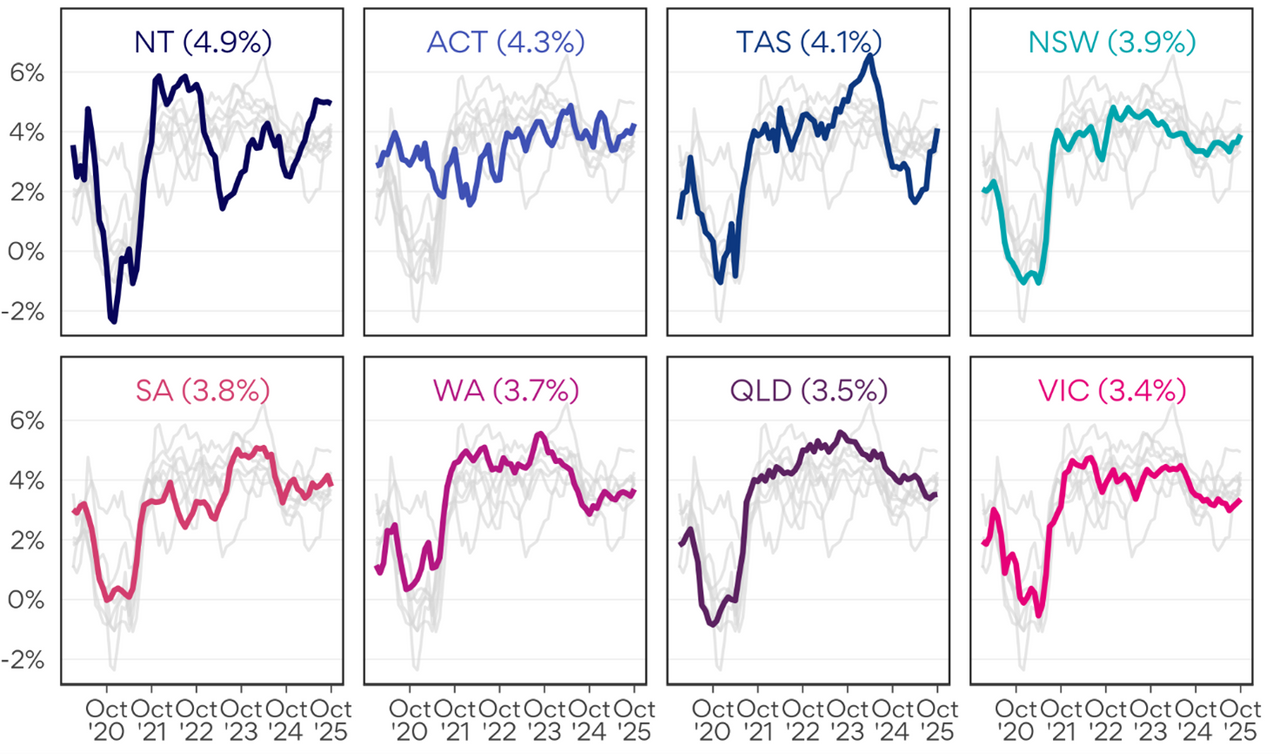 Advertised salary growth in the Northern Territory has sat around 5.0% y/y since June, outpacing the rest of the country.