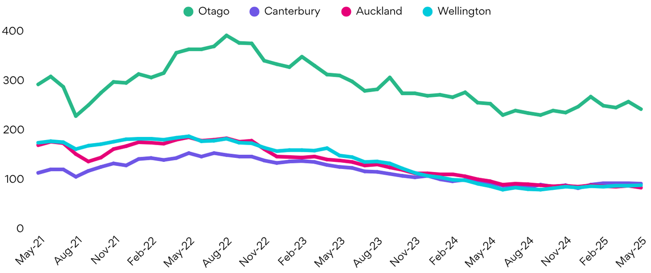 Three regions recorded a rise in ad volumes in May: Taranaki (6%), Wellington (2%) and Southland (1%).