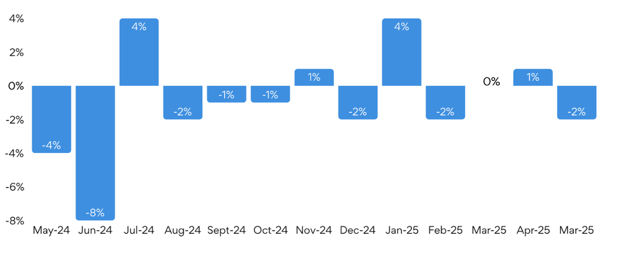Figure 1: National SEEK job ad percentage change m/m (May 2024 to May 2025)